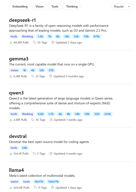 Llama3 や Gemma2 、OpenAI o1に匹敵するといわれた「DeepSeek-R1」も利用できます。