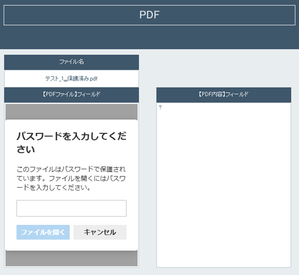 次に、パスワードで暗号化されたPDFを試してみました。
