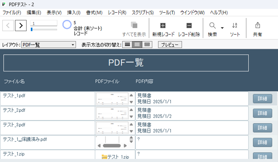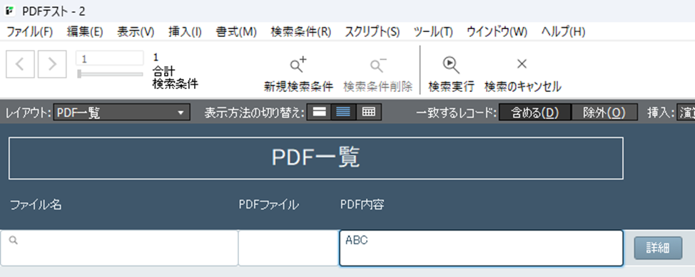 この機能の最も感動的な点は、抽出したテキストがFileMakerの標準検索機能で利用できることです。