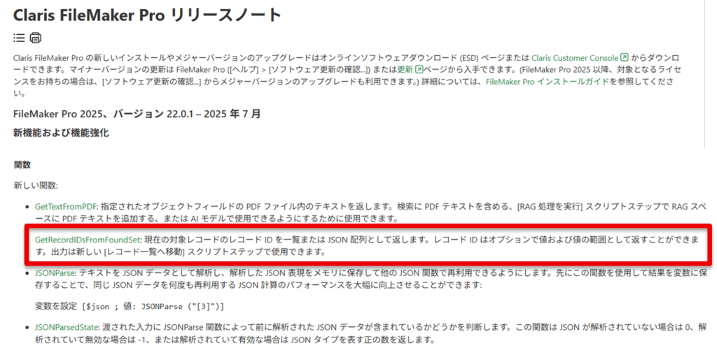 この関数の詳細については、Claris公式のリリースノートをご確認ください。