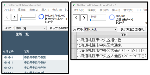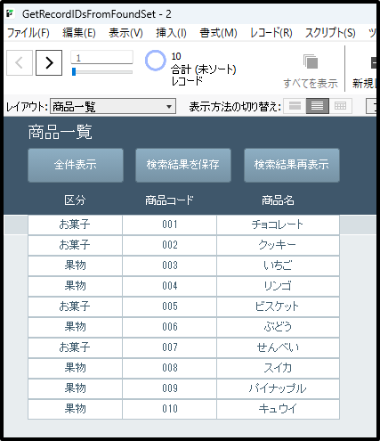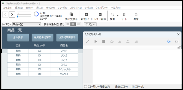 GetRecordIDsFromFoundSetを利用して、実際に再表示されるか検証してみます。