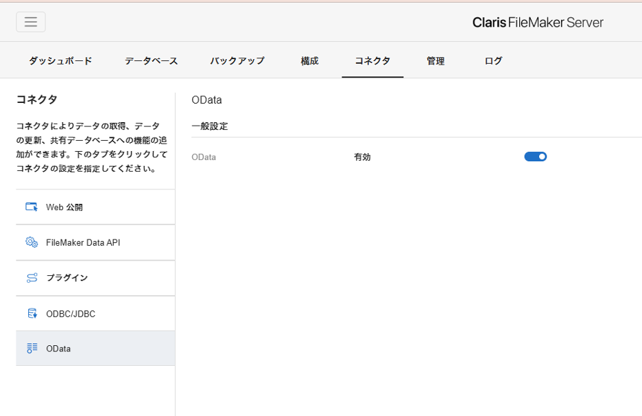 OData の利用は、FileMaker Server との通信になりますので、サーバーに対して、OData の利用許可を与えます。