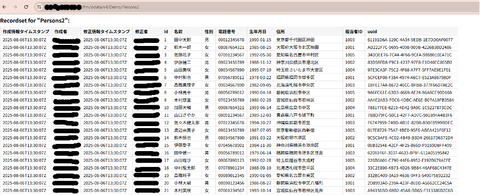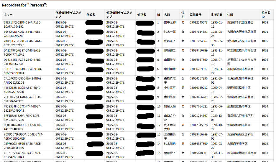 注: 例で使用している「Persons」のデータは、生成AIで作成した架空のものです