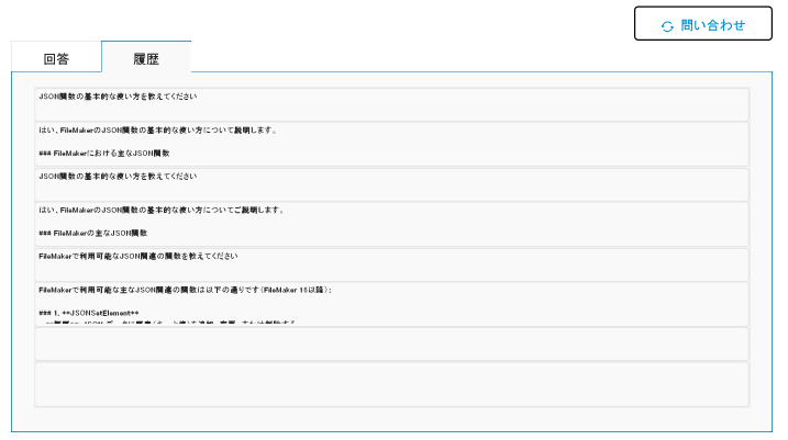 - 質問内容: 問い合わせた質問の履歴を保存。