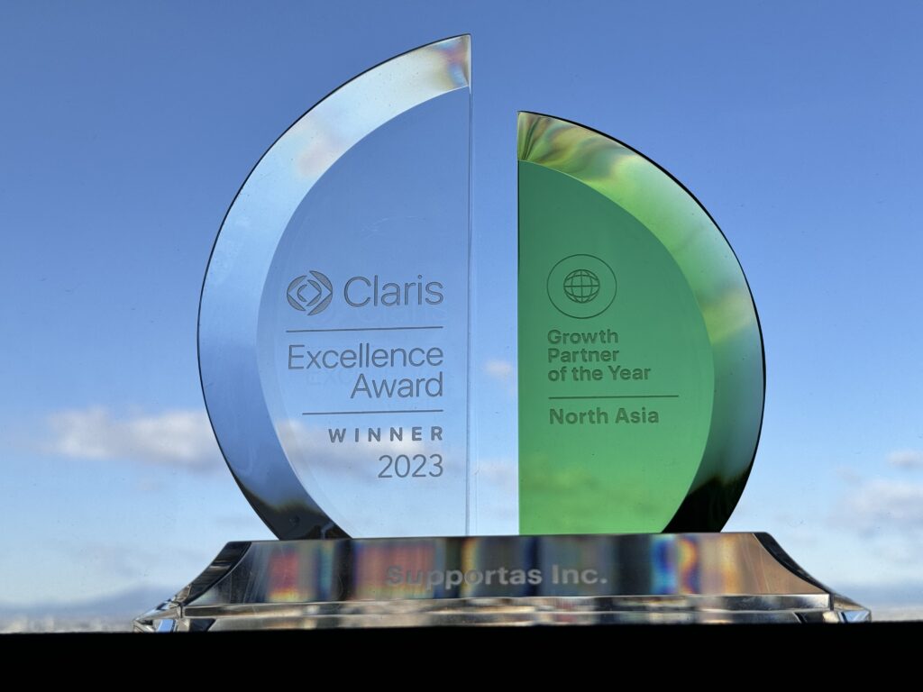 Apple の子会社である Claris International Inc. は、2023年に世界中で受賞に値する貢献や業績を残した Claris パートナーや Claris コミュニティのメンバーを表彰する Claris Excellence Award 2023 の一環として、株式会社サポータスを「Growth Partner of the Year — North Asia」の受賞者に選出しました。